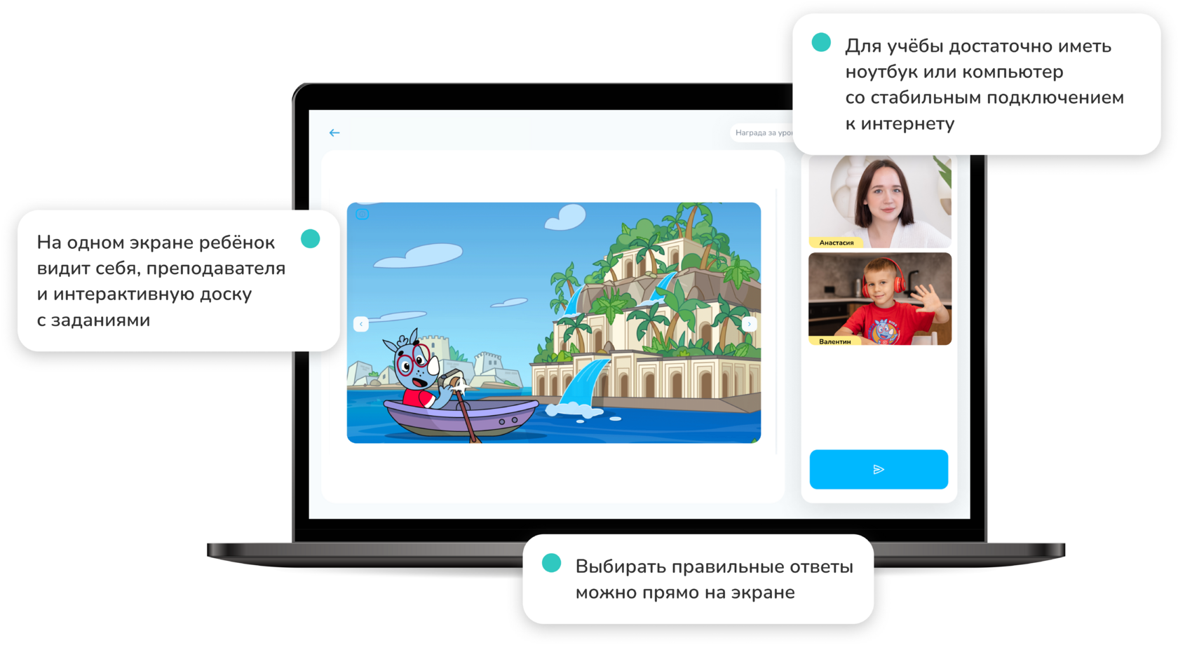 Учимся через игру — без нудных учебников и тетрадей. Увлекательный сюжет и интерактивные задания, как в онлайн-игре, помогают полностью погрузиться в процесс обучения
